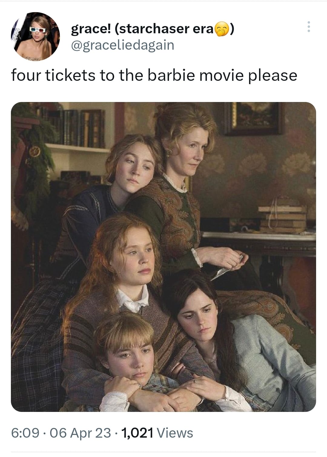 VEE: I already have a handmade Barbie handbag! I have Malibu Barbie fabric ready to make myself a bowling shirt! I am just… the visual vibe of it is everything. Margot Robbie’s hair! Margot Robbie’s face! MARGOT ROBBIE!