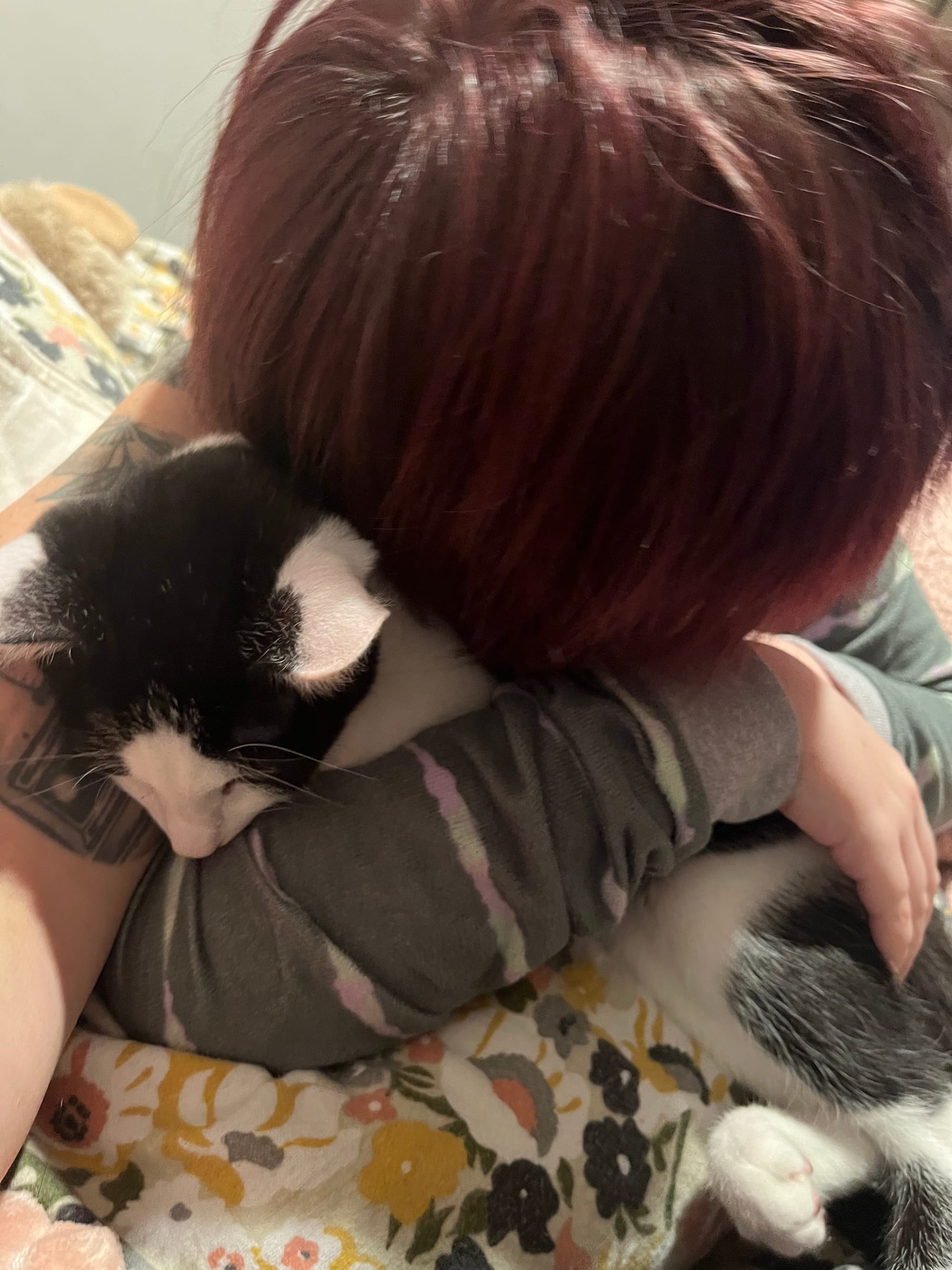 And I look at this little boy and how he is pushing himself to be OK with all the things that are so hard for him. He lives in a world that is too busy, too scary, too loud, too overwhelming. It is not set up for him. He now faces smells he doesn’t like, bites and scratches that make his whole body react, noise…all for a little kitten who is brand new to this world but also brand new to him.