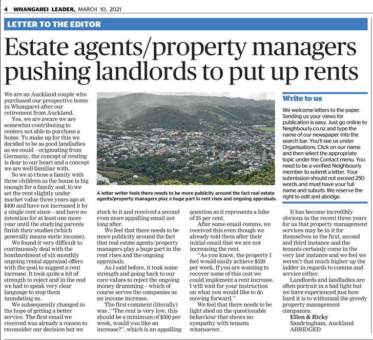 “It is understood that part of that includes investigating whether the rule change involves a breach of landlords’ human rights, including the ability to own their own properties, and the ability to make money.” - Property investors petition for reversal of rule changes.