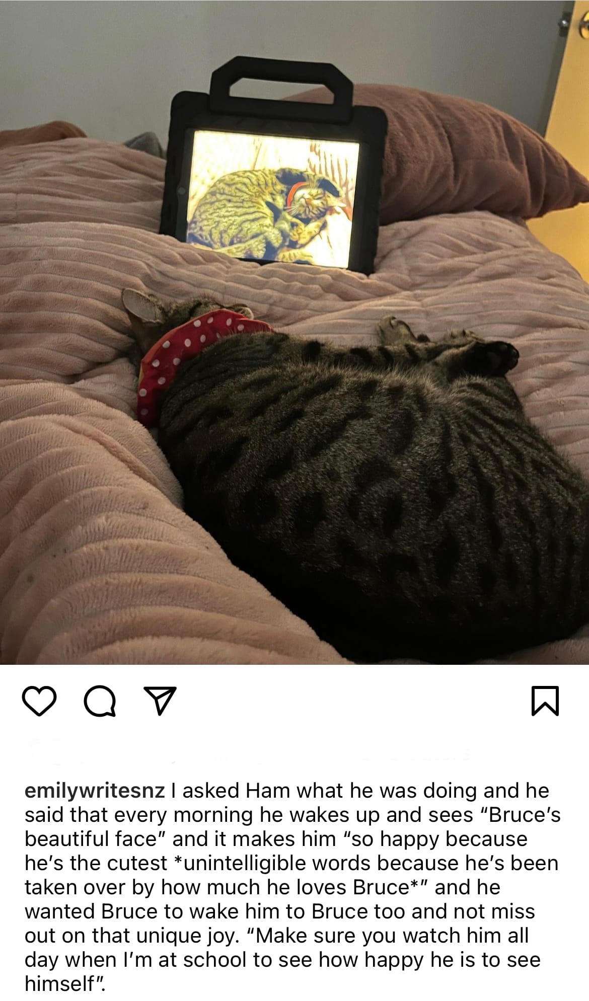 Bruce has proven to be the strangest cat I’ve ever known. My youngest is obsessed with him. He loves him more than anything in the world and strangely….Bruce seems to love Ham back.