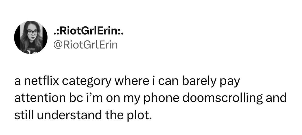 I did end up watching After the Flood on TV3 but I literally could not tell you what happened or how it ended because I was also looking at my phone. I told my therapist I was going to spend less time on social media and instead read. I did it for a week and it was so good for my mental health so of course I’ve just completely abandoned it. Don’t tell her. She will know anyway by looking at my face probably. I cannot lie, my face betrays me every time.