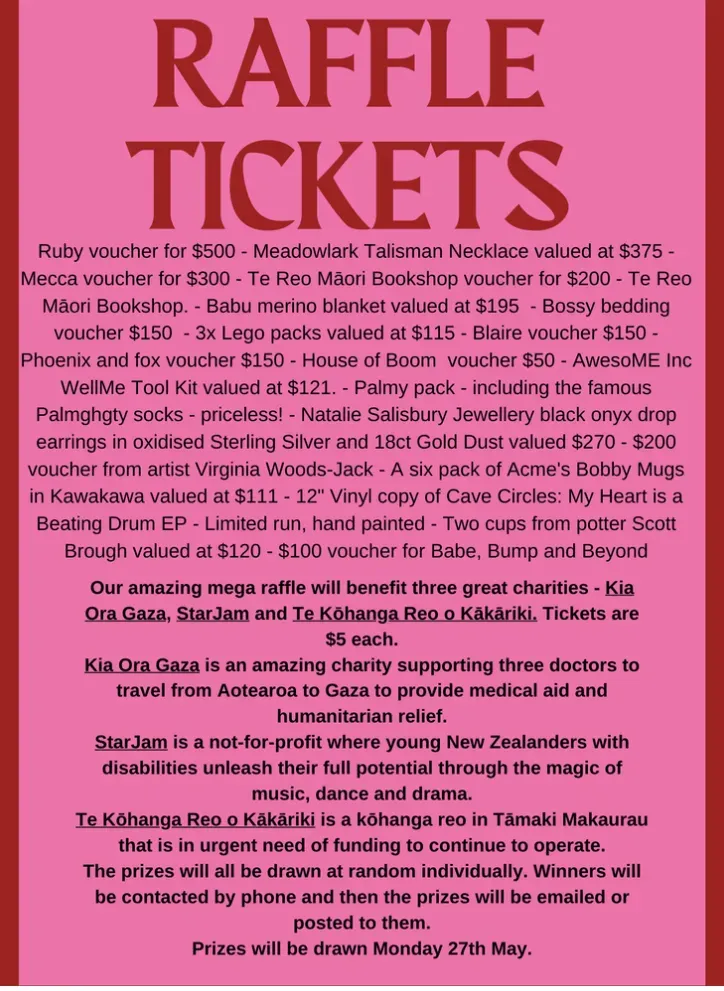 We have a big raffle on at the moment if you’d like to support some good causes - one of which is Kia Ora Gaza and the Freedom Flotilla.
