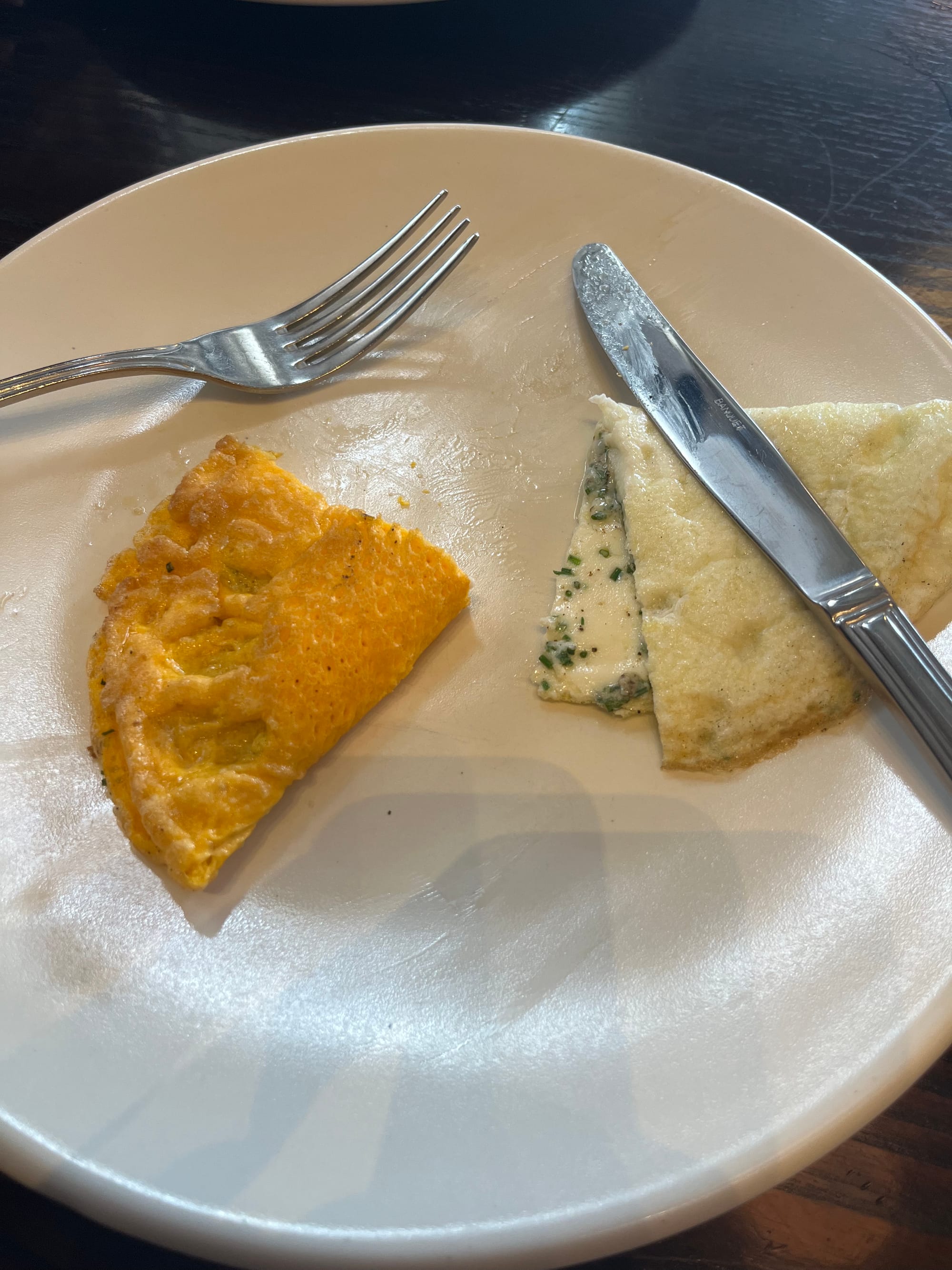 The egg yolk omelette was yummier than the egg white omelette. But definitely not worth dying for.
