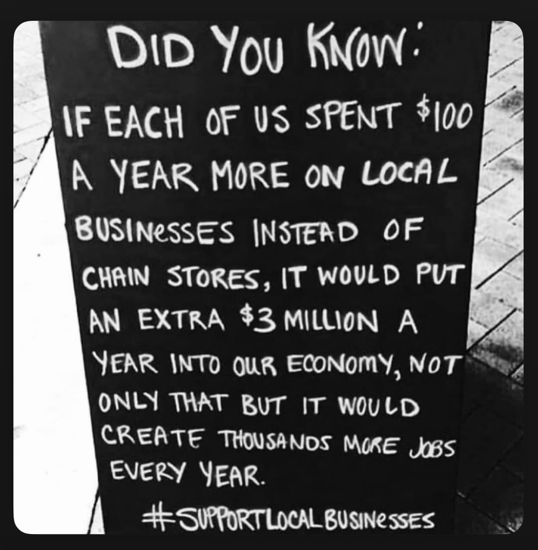 It's time to shop for Christmas presents (if that's something you do). Many small businesses across the motu will be sustained for half of next year by the sales they get over Christmas. It's been a tough year for many. So please support local before there's nothing local to support.