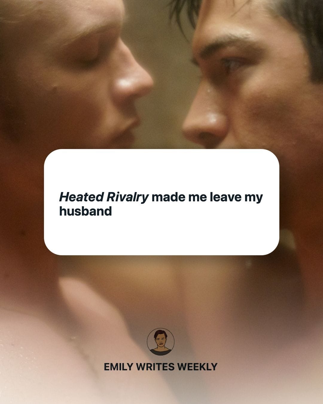 I found it back in November, and it's been living in my head every day since. There was something about the intense dopamine hit that it gave me that made me realise I'm allowed to feel joy. The last ten years of our relationship has been pretty horrible and lonely for me. The huge dopamine hit I get from watching or reading or thinking about Heated Rivalry helps me to let go of that. It made me want to start again and think about what made us be together in the first place and just focus on the now. And guess what, we have a sex life again!