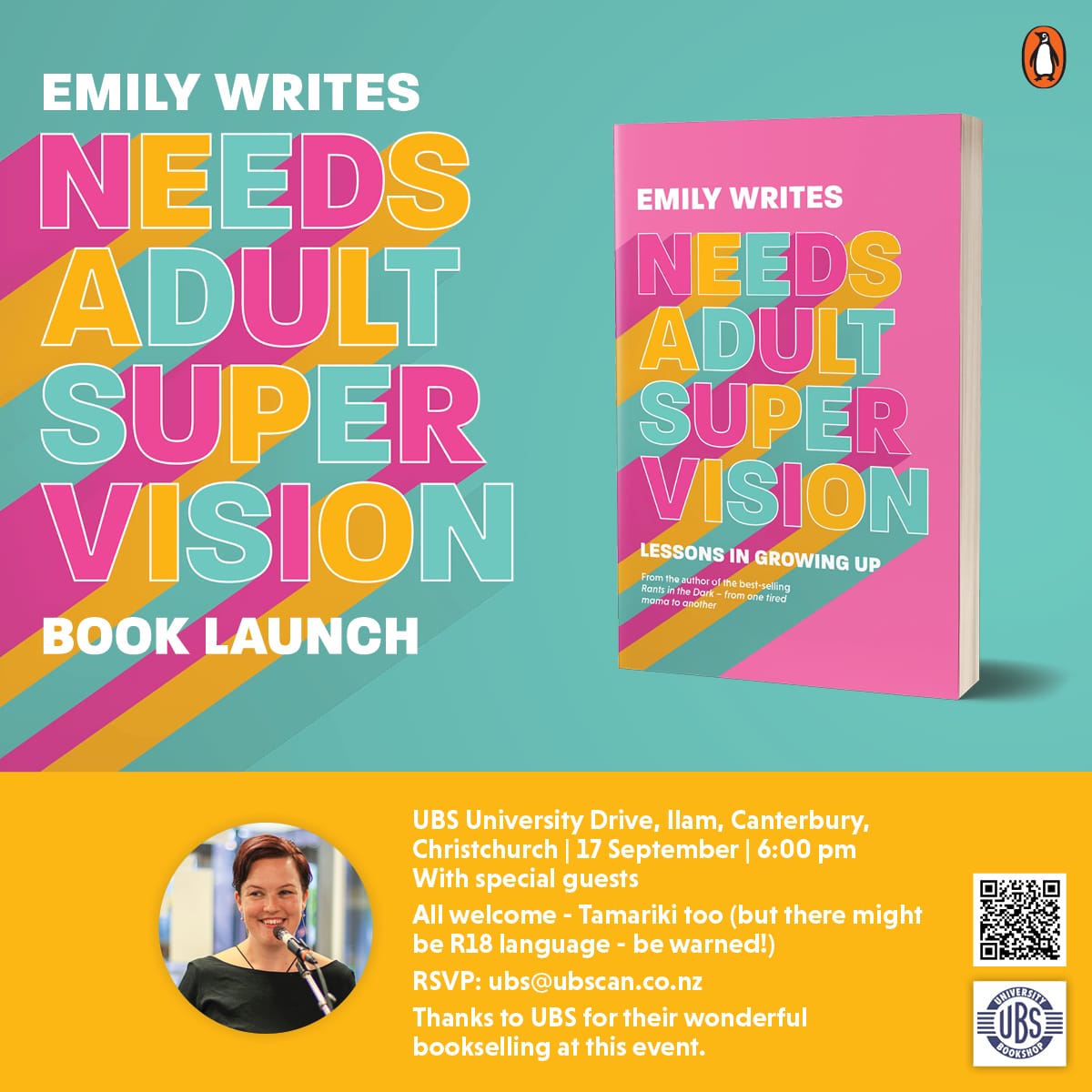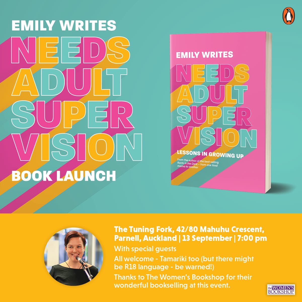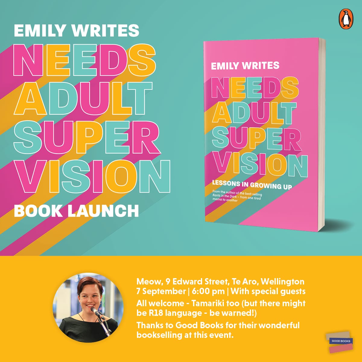 Needs Adult Supervision is Emily Writes' take on growing up and feeling like a real adult. This book looks at the growing pains of kids and their parents and their attempts to navigate a world that's changing by the minute. Emily paints a vivid picture of all the feelings, fortunes and failures that come with trying to parent when you don't always feel up for the task. What it feels like to be learning at the same time your kids are. What happens when we get radically honest about the challenges parents are facing.