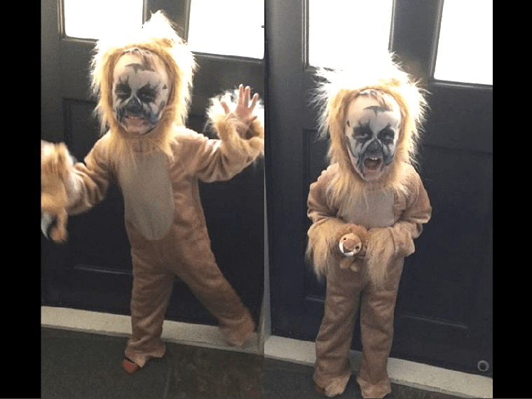 My first Halloween post-child involved me forcing my month-old baby into a penguin costume as my husband rolled his eyes. It was totally worth it and I have no regrets. Our second Halloween together, my baby was a carrot (I have always had a soft spot for children as vegetables). On our third Halloween together, I was very pregnant and he dressed himself as a zombie Fireman Elsa. Then came a Zombie Lion. The new baby was Pea and Ham soup (I dressed the Ham as a Pea – get it?). Since then, we have had a shark, a flower clown, a robot horse, a bubble and a “bunch of flowers”.