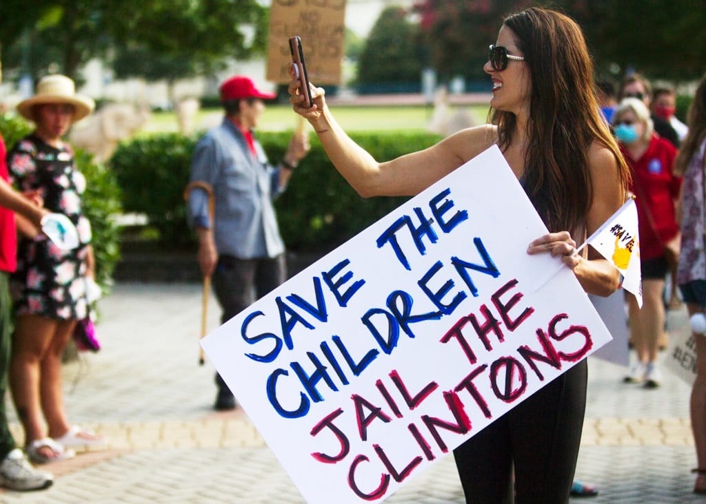 This photo is iconic and I could basically just include this photo and it will tell you everything you need to know about the Qanon Pro-Trump “Save Our Children” BS. It’s from this amazing Rolling Stone article.