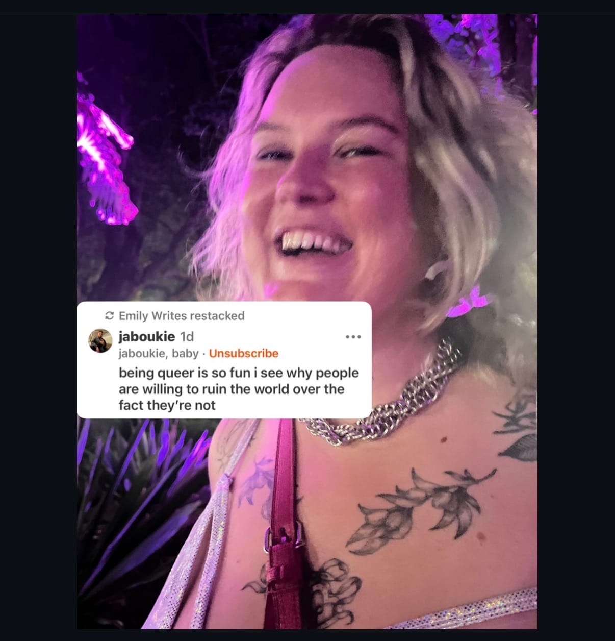 Seven years on, I'm even happier. It's hard to describe how much more comfortable I am in my sexuality. It's more than comfortable really...I absolutely love being queer. It has opened my world in ways I thought never possible. It has made me deconstruct every ridiculous societal expectation that has ever been forced on me. It's my greatest joy. I absolutely love being a bisexual menace and I love my community.