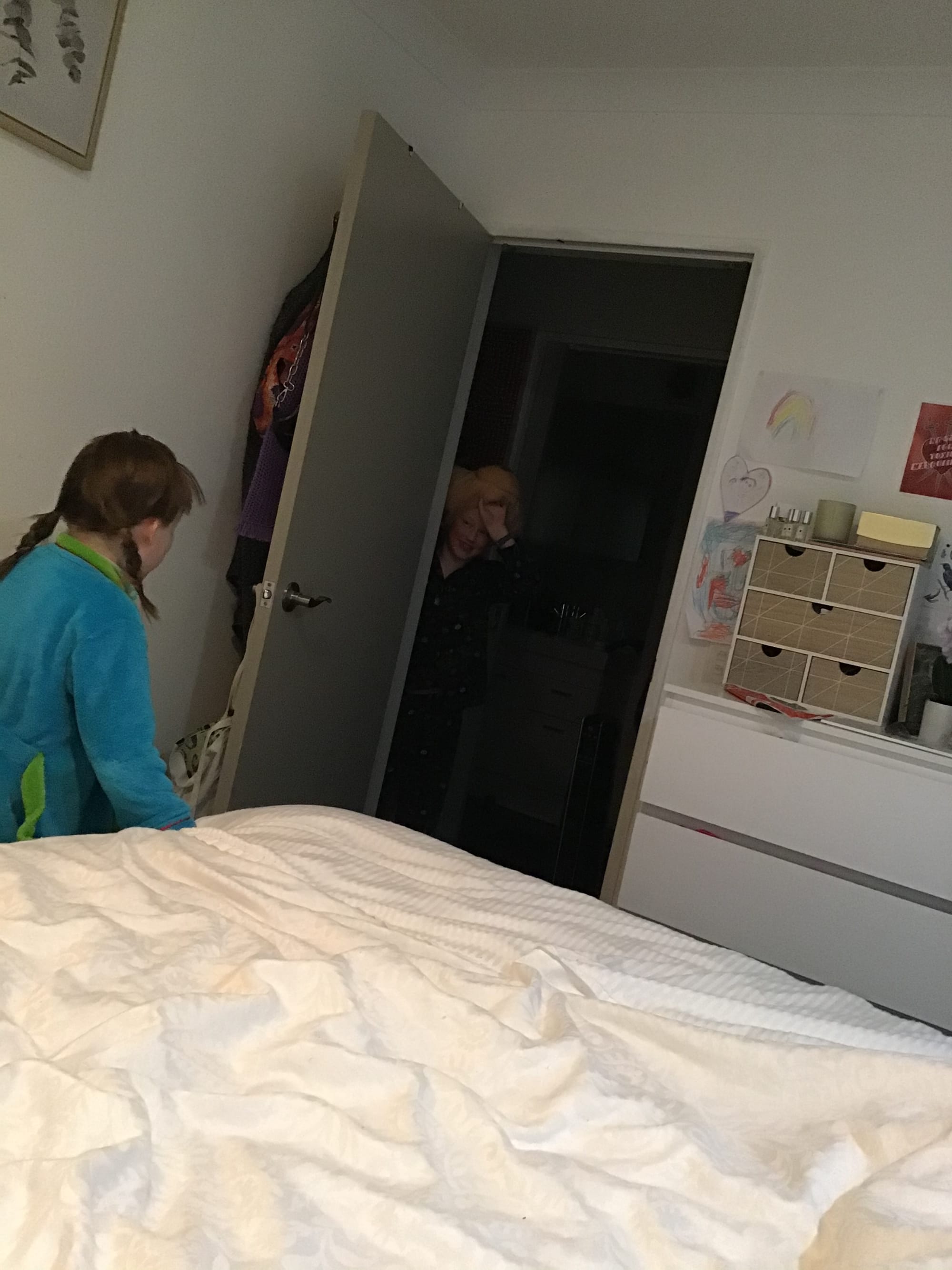 The bedtime routine begins. He chats away as I try to keep him still. I brush his long hair and begin to plait. The sliding door opens and Eddie races past us, he smells like the wild. He’s into the shower before the water runs warm enough and you could set your watch to his familiar squeal.