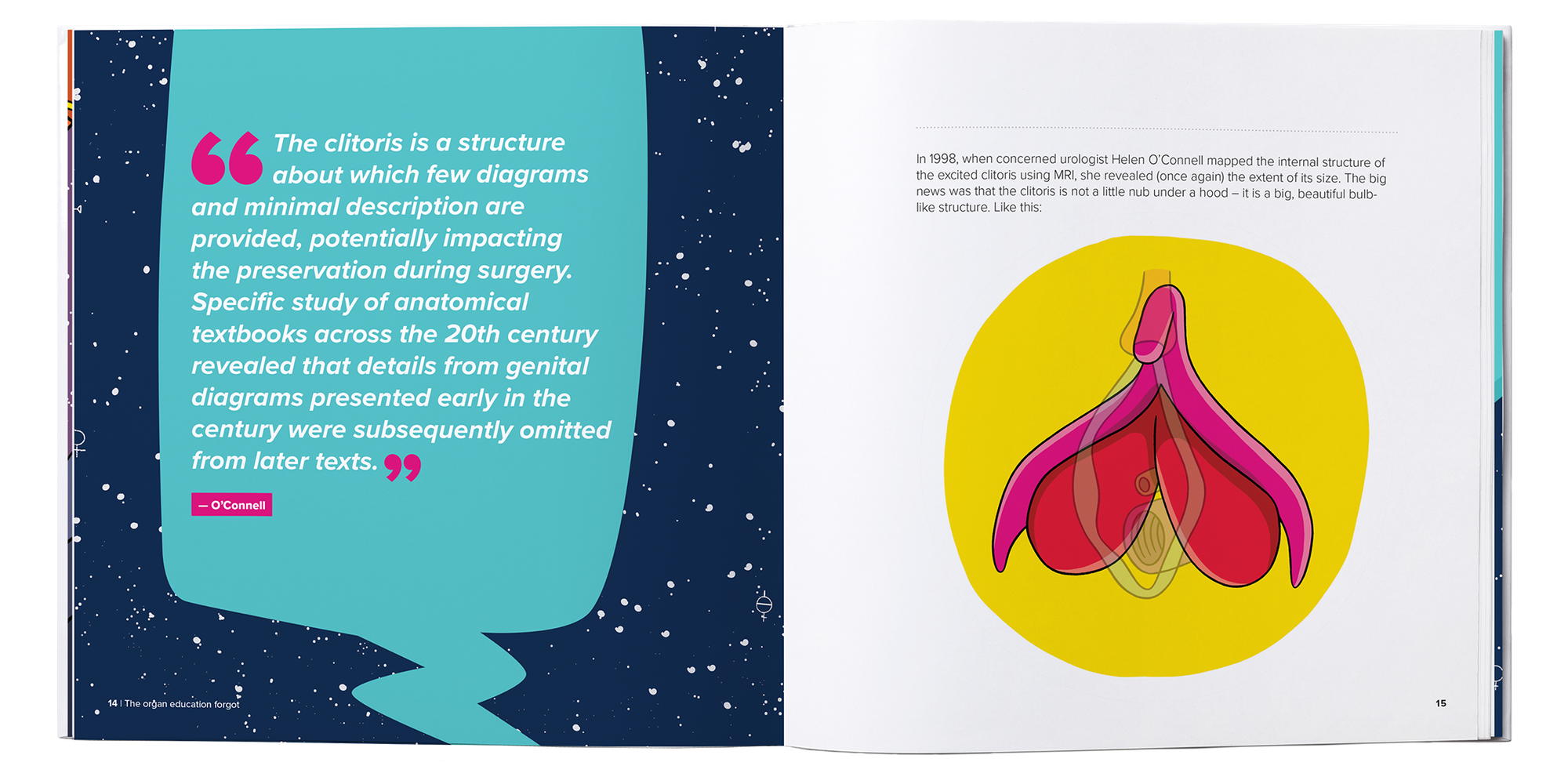 “Most people don’t even know the clitoris is an actual organ, that it is hidden under the surface. That lack of knowledge has really big impacts, from women with clitoral nerve damage because some surgeons aren’t educated to kids that can’t name their own body parts which means not being able to communicate about them”.
