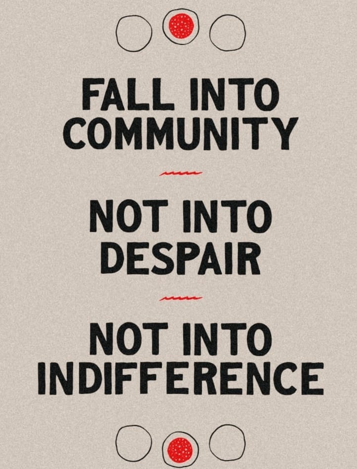 Emily: I really love that. I think that approach has always been needed, but it's especially needed now. Look, I'm gonna get straight to the point. I'll say it till I'm blue in the face, but I'm convinced the only way we are going to survive whatever happens next is if we're in community with each other. I think community is the main antidote to despair. We need each other to help us through the horrors of tomorrow as well as the horrors of today.