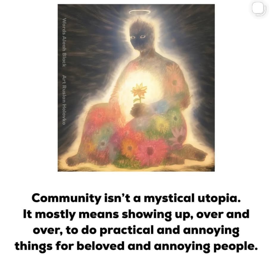 And yet, I promise you that it will cost us so much more if we don’t. We simply cannot afford to go on the way we are within the conditions we find ourselves in. I understand how difficult it is to work a full week, have families to care for and thrive under the exuberant cost of living - times are bloody hard. However, by leaning into intentional communities to share the load of child-care, food spending and resource sharing, we will get so much more in return.