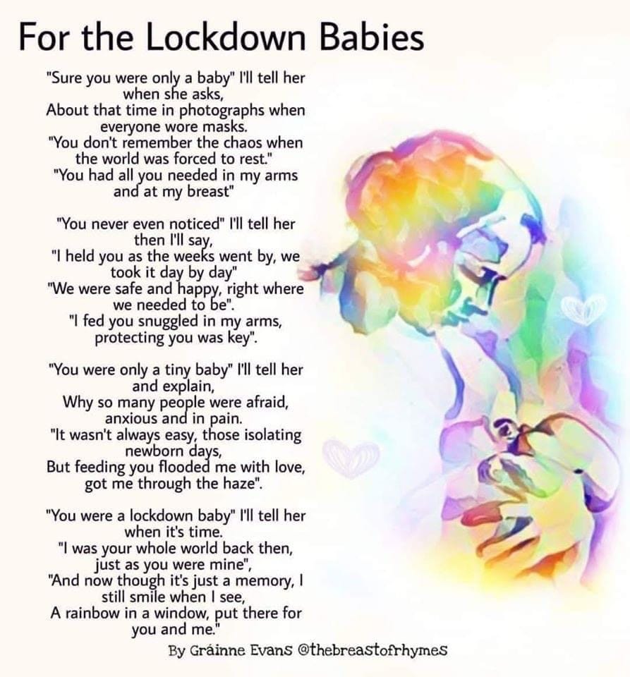“And a silver lining of lockdown is once you get home – a government mandated newborn bubble!”