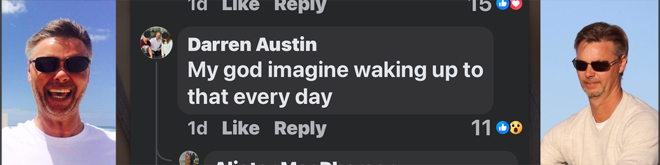 Ed Murray says “Get some makeup on for gods sake your [sic] frightining [sic] people” and Mike Flavell says “Did you just get out of bed. Look at the state of those bags and wrinkles”.